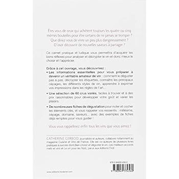 Etes-vous de ceux qui achètent toujours les quatre ou cinq mêmes bouteilles pour être certains de ne jamais se tromper ? Que diriez-vous de vivre un peu plus dangereusement ? D'oser découvrir de nouvelles saveurs à partager ? Ce carnet pratique et ludique vous permettra d'acquérir les bons réflexes pour analyser et décrypter le vin et donc mieux le choisir et l'apprécier. Grâce à cet ouvrage, vous découvrirez : Les informations essentielles pour vous préparer à devenir un véritable amateur de vin : comment le déguster pas à pas, décrypter les étiquettes, connaître les principaux cépages, les différents styles de vin, apprendre à exprimer vos impressions dans les règles de l'art... Une sélection de 60 crus variés, faciles à trouver et à des prix raisonnables pour développer votre goût et varier les plaisirs. De nombreuses fiches de dégustation pour noter et cocher les éléments clés, et vous rappeler vos ressentis : millésime, cépage, domaine, saveurs... avec des exemples de fiches déjà remplies pour vous guider ! Vous vous rappellerez enfin tous les vins que vous aimez !